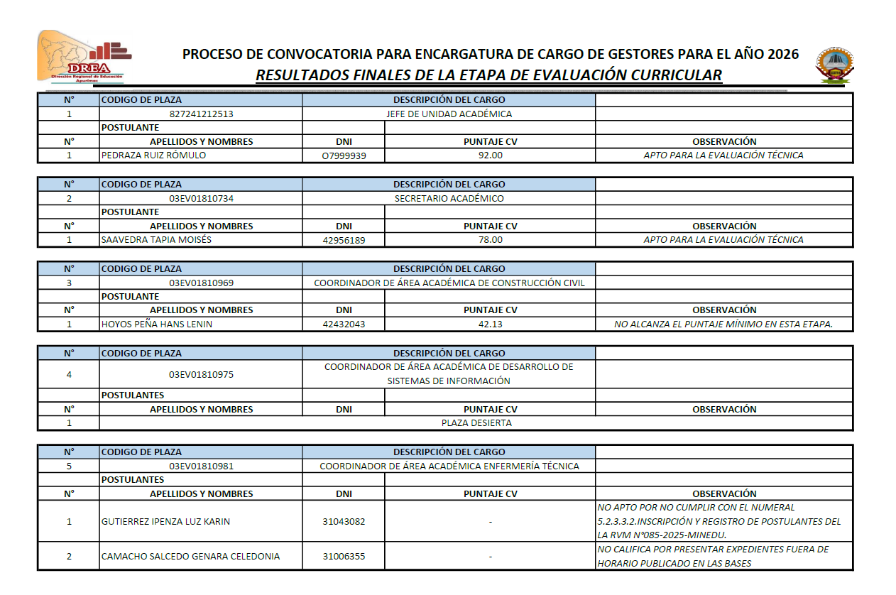Resultado del proceso de Absolución de reclamos del proceso de selección de Gestores pedagógicos del IESTP Abancay 2025 Posted by iestpa Categories Convocatorias, Convocatorias laborales, Noticias, Ultimas entradas Date 3 octubre, 2025 Comments 0 comment En cumplimiento al cronograma del proceso de selección de Gestores Pedagógicos según la RVM 085-2025,MINEDU, el comité del evaluación atendió los reclamos de este proceso, cuyo resultado es el siguiente: Descargar el resultado de absolucion de reclamos Share: iestpa Previous post Resultado de Evaluación Curricular de Proceso de Selección de Gestión Pedagógica del IESTP Abancay para el año lectivo 2026 3 octubre, 2025 Next post Resultado de Evaluación Tecnica del Proceso de Seleccion de Gestores Pedagógicos 2025 7 octubre, 2025 You may also like Resultado final de selección de Gestores Pedagógicos 2026 10 octubre, 2025 Resultado de Evaluación Tecnica del Proceso de Seleccion de Gestores Pedagógicos 2025 7 octubre, 2025 Resultado de Evaluación Curricular de Proceso de Selección de Gestión Pedagógica del IESTP Abancay para el año lectivo 2026 1 octubre, 2025